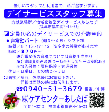 新宮・古賀・福津・久山版 【NPO法人 ライブリーワン】介護スタッフ募集<ヘルパーセンター事務職員・夜勤スタッフ>